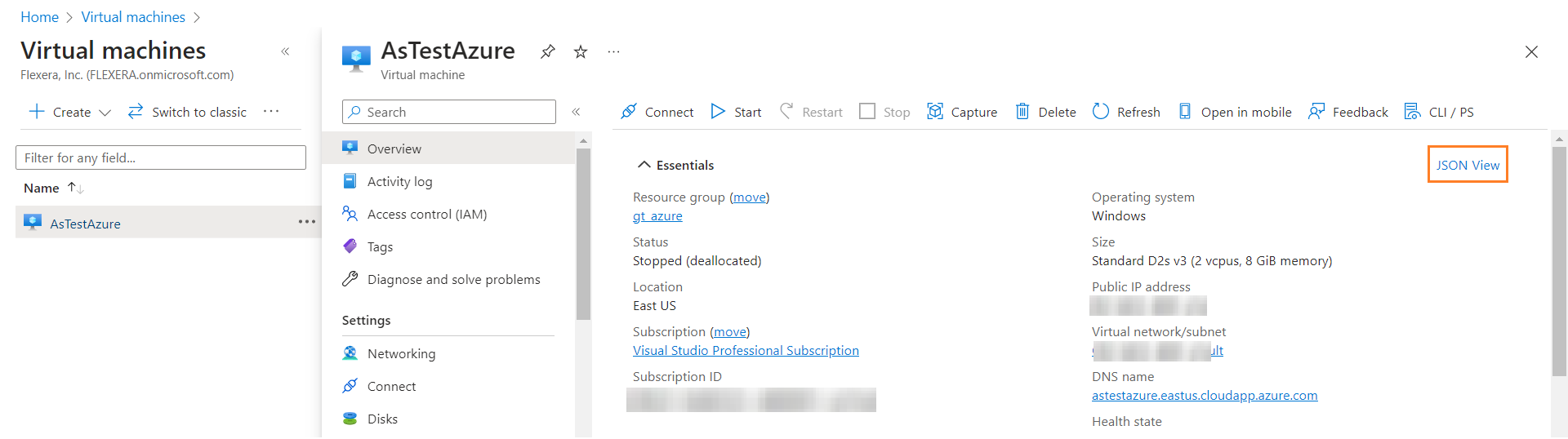 3. Select the desired virtual machine. The Overview of the selected virtual machine appears.