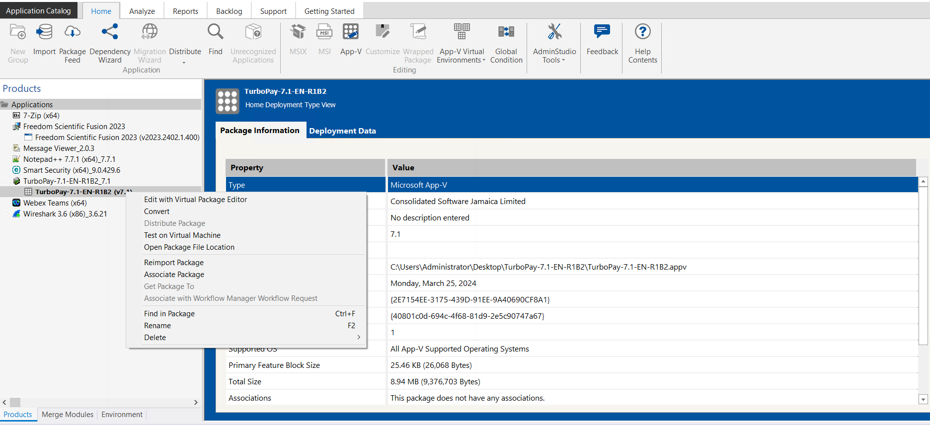 - Click Finish to close the wizard. The converted package is now listed in the tree.